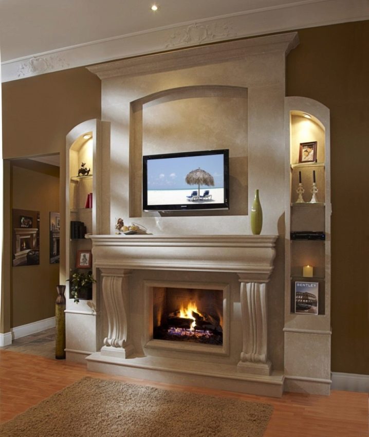 أما بالنسبة للمفروشات ، فمن الأفضل وضع المدفأة على الحائط مقابل أريكة أو كراسي بذراعين مع طاولة صغيرة. يُنصح بإزالة جميع الأجهزة التقنية الكبيرة بعيدًا عن الموقد المزخرف ، حيث إنها ستصرف الانتباه عن التفاصيل الرئيسية للجزء الداخلي للغرفة – الموقد. يضع البعض جهاز تلفزيون فوق المدفأة ، لكن ينصح المصممون الداخليون بعدم القيام بذلك. يمكن تزيين الموقد بتفاصيل أنيقة مثل الساعات القديمة أو التماثيل الغريبة ، وتضيف الصور العائلية المثبتة على المدفأة الدفء والراحة إلى منزلك..