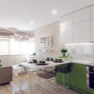 على العكس من ذلك ، إذا كان من الممكن وضع عناصر المطبخ على ثلاثة جوانب من الغرفة ، وإذا كان الأمر كذلك ، فقم بإحاطة غرفة المعيشة بداخلها. يمكن أن يكون هذا طاولة وكراسي وأشياء أخرى..