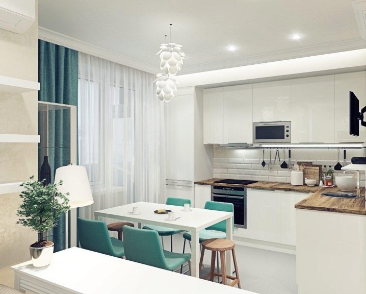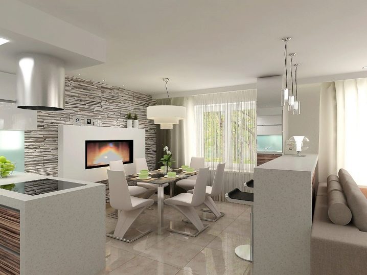 يتم تطوير مشروع تصميم غرفة المعيشة والمطبخ المستقبلية بناءً على حجم وشكل الغرفة ، فضلاً عن الذوق الفردي الذي لا ينبغي إهماله. ثق في حدسك وتفضيلاتك. بعد كل شيء ، لك أن تعيش هنا.