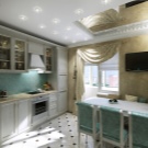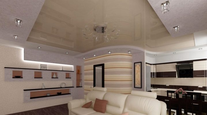 لتوسيع المساحة بصريًا ، يمكنك استخدام المرايا ، وكذلك السقوف المتدرجة اللامعة. هنا أود أن أقول أكثر من ذلك بقليل. يقلل استخدام الأسقف المتوترة بشكل كبير من الوقت المطلوب لإنهاء الأعمال ويخلق حلول تصميم لا حصر لها. إذا رغبت في ذلك ، يمكن أن يصبح السقف هو المحور الرئيسي في تشكيل مظهر غرفة المعيشة في المطبخ.التكنولوجيا المستخدمة هنا معروفة منذ فترة طويلة وتسمح لك بإنشاء أسطح جميلة غير ملحومة على السقف. بالإضافة إلى ذلك ، تتيح السقوف الممتدة إمكانية تطبيق الرسومات وتنويع الملمس واللون. تسلط الأضواء الكاشفة المدمجة الضوء على أصالة التصميم وتفرده. عند اختيار سقوف متوترة ، ينبغي إيلاء اهتمام خاص لجودة المواد وسمعة الشركة المصنعة. يجب ألا تكون مواد الجودة المستخدمة في إنتاج مثل هذه الأسقف قابلة للاشتعال وسامة.
