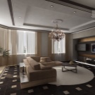 تؤكد الألوان الباردة ، مثل الأخضر والأزرق والأبيض ، على نضارة الغرفة ونظافتها. أقصى استخدام للمنسوجات والجص في تصميم غرفة المعيشة سيعطي مزيدًا من الراحة والراحة ، ويؤكد على الكلاسيكيات التقليدية.