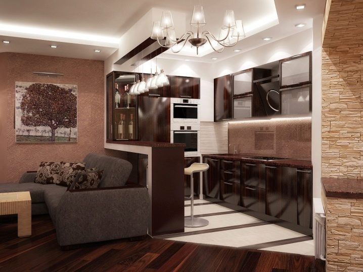 بالإضافة إلى المزيج المتناغم من الأثاث واللون والصورة العامة ككل ، يجب أن تفكر بالتأكيد في خيار تقسيم غرفتين ، والتي ستكون مثالية بالنسبة لك. يمكنك تقسيم المطبخ وغرفة المعيشة بطرق مختلفة ، يقدم المصممون العصريون الكثير من الخيارات ، من بينها يمكن للجميع أن يجد بالضبط ما يحتاجه على وجه التحديد.