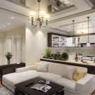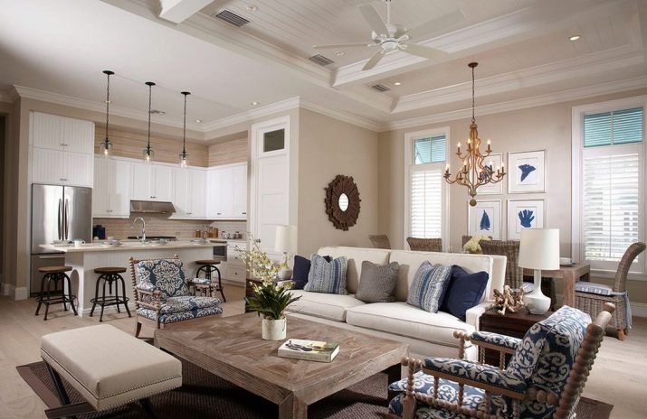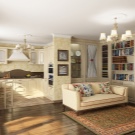 المطبخ الكبير مع منطقة جلوس في غرفة المعيشة مريح وعملي بشكل لا يصدق. أولاً ، في مثل هذه الغرفة ، يمكنك وضع العديد من الأشياء ، بالإضافة إلى العناصر الزخرفية التي تساعد في توفير راحة إضافية. ثانيًا ، راحة المطبخ المشترك مع غرفة المعيشة هي أنه يمكنك طهي العشاء بهدوء والتحدث مع الأصدقاء الذين يأتون للزيارة في نفس الوقت..