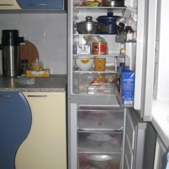 في الوقت نفسه ، يتم تعويض انسجام معدات التبريد بمؤشرات الأبعاد الأخرى. يمكن أن يكون أعلى من المعتاد أو أعمق. على أي حال ، لا ينبغي للمشتري أن يقلق من أن النموذج الأضيق سيخزن الطعام بشكل سيئ أو أنه لن يكون هناك مساحة كافية للأواني والحاويات والأواني الأخرى التي تحتوي على الطعام. الرفوف الموجودة فيه هي بالفعل عشرة ، وأحيانًا خمسة عشر سنتيمترا. لكن هذه المنطقة كافية لتناسب كل شيء.