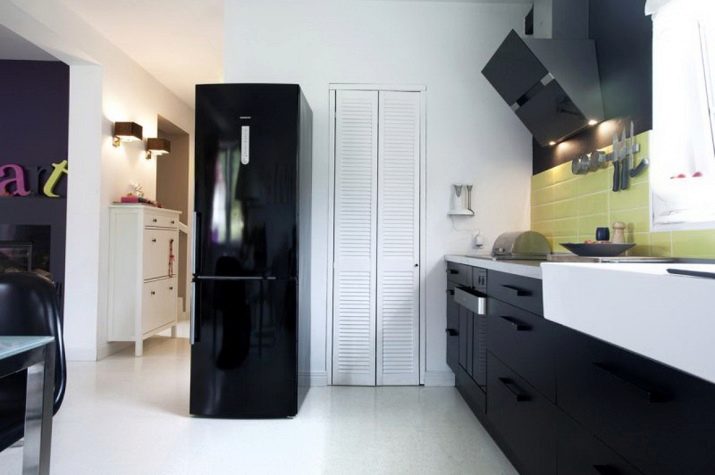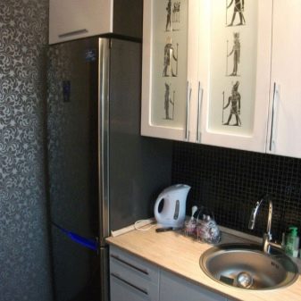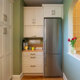 من ناحية أخرى ، يحل هذا مشكلة وضع الأثاث بشكل مضغوط وتحرير مساحة إضافية للمطبخ ، من ناحية أخرى – ما يمكن أن يتناسب مع مثل هذه الثلاجة. الحد الأدنى فقط ، وهذا التصميم في الاستخدام ليس مناسبًا للغاية ، ولا يمكن اعتبار هذا ترتيبًا منزليًا مريحًا.