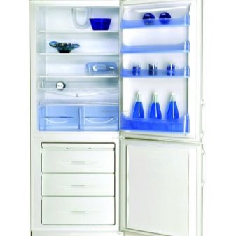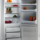 حجرة الثلاجة مزودة برفين معدنيين قابلين للتعديل ورف بلاستيكي. توجد علب للفواكه والخضروات (يوجد منها اثنان) وحاوية أخرى للحوم. يتسع الباب العملي للزجاجات (تم حجز رف واحد لهم) ، والأطعمة المعلبة (رفان) ورف خاص للبيض..