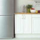 لتحقيق التناغم البصري ، قم بمطابقة العناصر الداخلية الأخرى ، بدلاً من الأجهزة ، مع نغمة معدات التبريد. فليكن الستائر ، مفرش المائدة ، عناصر الديكور.