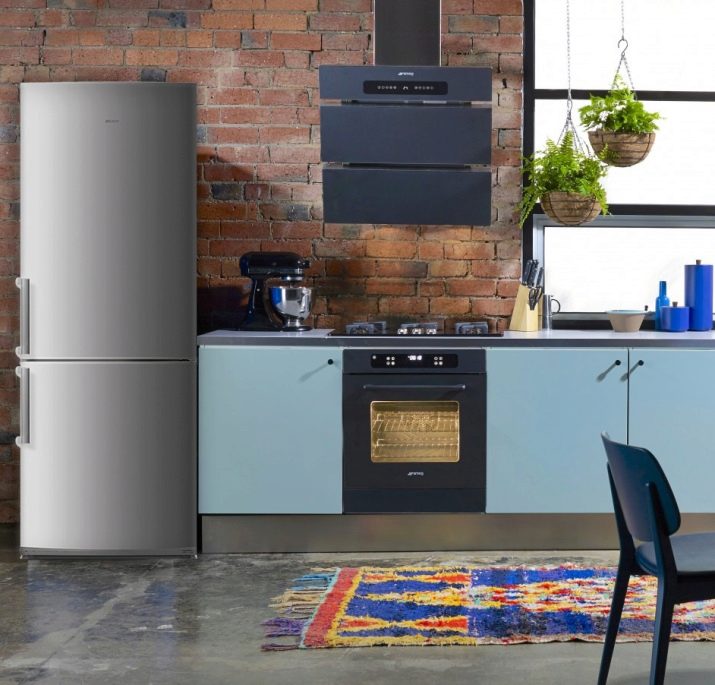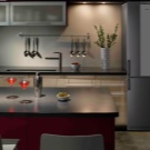 يفضل عشاق التقشف في الداخل ثلاجات رمادية داكنة. إنه الخيار الأمثل لمطبخ حديث وبسيط. مثل النسخة الفضية ، تتناسب هذه المعدات بشكل أفضل مع الغرف التي تحتوي على سماعة رأس وأرضية وتزيين جدران بألوان باردة..