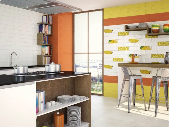 في الوقت الحاضر ، يحظى المطبخ ذو الطابق الواحد بشعبية كبيرة ، في ضوء ذلك ، يظل الجدار بالكامل تقريبًا فوق منطقة الطهي فارغًا.. يجب تزيينه ، وهنا يأتي البلاط المزخرف للإنقاذ ، سواء في الإصدار القياسي أو في شكل فسيفساء من العناصر الصغيرة. يمكن طي أي صورة أو نمط منه..