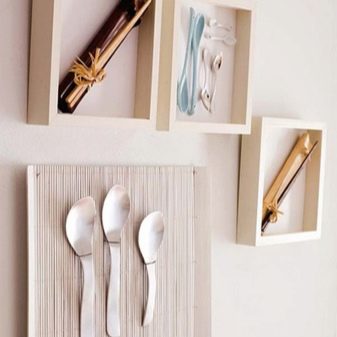 - السكاكين. لديك ملاعق وشوك أصلية ، أو ربما تكون أدواتك الفضية تتجمع الغبار؟ ثم لا تتردد في ترتيبها في إطار جميل وتعليقها في أكثر الأماكن بروزًا..