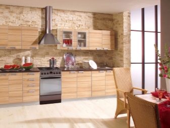 تريد إبراز النمط الخاص لمطبخك؟ ثم سوف يناسبك الحجر أو الطوب المزخرف. بمساعدتهم ، عادة ما يصنعون أسلوبًا من القرون الوسطى أو بحريًا أو ريفيًا. يفضل الكثير من الناس تشطيب الحجر في منطقة العمل ، حيث إنه مقاوم للرطوبة العالية والتغيرات في درجات الحرارة..