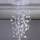 لصنع عاكس الضوء الرقيق والخفيف ، ستحتاج إلى نوعين من الخرز: لؤلؤي وشفاف. يجب تثبيتها على سلك فضي بطريقة تقلد الفروع. اربط عناصر الديكور الناتجة بالحلقات التي تشكل إطار الثريا.