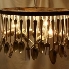 أسهل طريقة لإنشاء ثريا غير عادية هي لصقها على عاكس الضوء القديم. ستبدو الملاعق البيضاء والفضية مؤثرة للغاية..