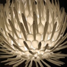 خيار آخر لإنشاء ثريا من الشوك والملاعق البلاستيكية هو تشكيل كرة منها. تبدو مستقبلية.