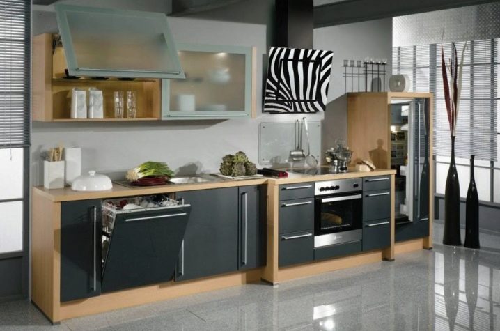 - يخفي نوع الشفاط المدمج وجوده عن العينين. سيتعين علينا إلقاء نظرة جيدة لمعرفة مكان الجهاز. والسبب هو أن الوحدة مدمجة في أثاث المطبخ ، ونتيجة لذلك يندمج الشفاط مع المجموعة..