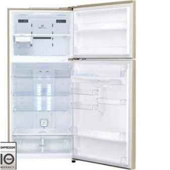 - ماركة الثلاجة GNM702HEHM مع الفريزر العلوي من النوع الأوروبي. إنه يحافظ تمامًا على جودة المنتجات ويستهلك الحد الأدنى من الكهرباء ، حيث إنه مزود بضاغط عاكس. تنتمي هذه التقنية إلى الدرجة الاقتصادية المواتية A + ، والتي تعد مهمة جدًا لميزانية الأسرة. لا تحتاج الثلاجة لأي صيانة خاصة بفضل التقنية الفريدة لا الصقيع: لا يحتاج إلى إذابة الجليد وإزالة الجليد المتشكل من الجدران.