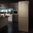 هذا الموديل مصنوع من البيج الناعم وهو مثالي للمالكين الذين يحبون ألوان الباستيل. من الداخل ، فهي واسعة مثل سابقاتها ، ولها نظام كامل "لا الصقيع", التجميد الفائق والتبريد الفائق ومؤشر الصوت. الثلاجة فسيحة للغاية ، ولكن بها بعض الاختلافات عن سابقيها. يوجد داخل المقصورة العلوية رفان قابلان للتعديل ، ودرج كبير وسحب للخارج "منطقة النضارة", بداخلها يتم الحفاظ على درجة الحرارة باستمرار عند درجة الصفر. يوجد أيضًا حامل زجاجة خاص. تحتوي حجرة الفريزر السفلية على ثلاثة أدراج واسعة.