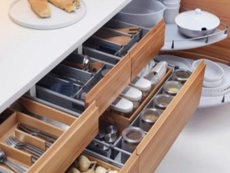 تجهيزات المطبخ عبارة عن تصميمات وآليات خاصة تُستخدم لتحسين تشغيل جميع العناصر الهيكلية للأثاث.. يجب تسليط الضوء على العديد من الميزات الوظيفية الرئيسية لهذه الأنظمة: