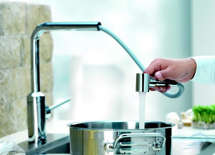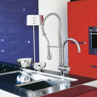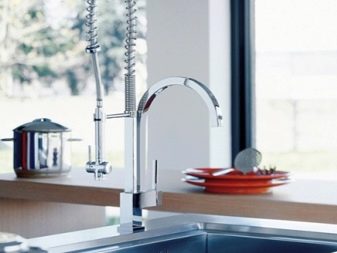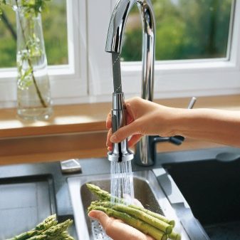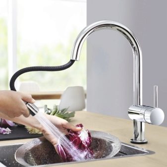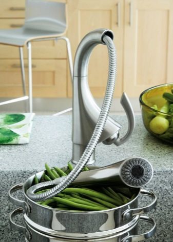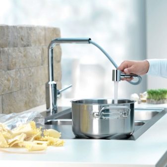 بفضل هذا الجهاز ، أصبح من الممكن الآن إحضار الرافعة إلى الحاوية ، وليس العكس ، مع تجنب الرش. وفقًا للمستخدمين ، أصبح غسل الحوض أكثر ملاءمة ، حيث يمكن تقريب الفوهة من أي نقطة في الحوض.
