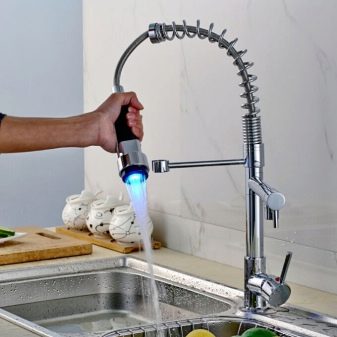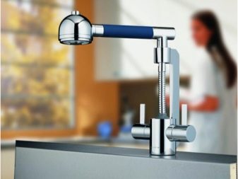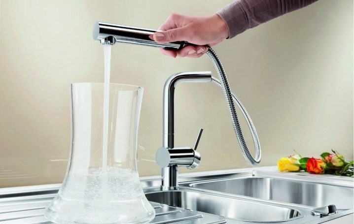 يشبه الجهاز المزود بفوهة قابلة للسحب الخلاط التقليدي. يوجد في نهاية الحفرة فوهة خاصة يمكن سحبها إذا لزم الأمر. تكون هذه الأجهزة ثابتة ، أي عندما يزداد طول الرافعة ببساطة عن طريق سحب الفوهة بمقدار 5-15 سم ، علاوة على ذلك ، في بعض الطرز ، يمكن أن يكون الفوهة الممتدة للرافعة قابلة للحركة. خيار آخر مع خرطوم مرن. يمكن أن يصل طول هذا الخرطوم إلى 1.5 متر..