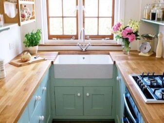 إذا كان لديك مطبخ صغير وقمت بحفظ كل متر مربع من المساحة الحرة ، فستحب بالتأكيد التصميم مع حوض يقع أسفل النافذة.. تزيين الحوض وعتبة النافذة بنفس الأسلوب ، وإضافة تفاصيل مشرقة إلى الداخل ، وسيكون مطبخك مشابهًا قدر الإمكان لغرفة أنيقة من مجلات التصميم الداخلي الغربية. وفي المطبخ الجميل ، يظهر الإلهام في كثير من الأحيان لطهي وجبات لذيذة لجميع أفراد الأسرة..