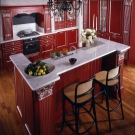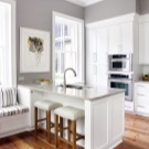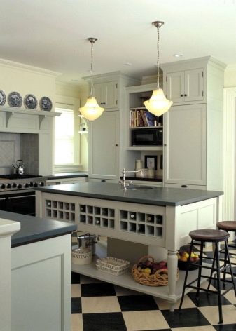 إذا سمحت المساحة ، يمكنك وضع مجموعة من طبقة واحدة مع “جزيرة”. يمكن أن تكون الجزيرة بمثابة طاولة ، ولكن هنا سيكون الغرض الرئيسي منها – مساحة تخزين إضافية. داخلها ، بالمناسبة ، لا يمكن أن يكون هناك خزانات فقط. هناك يمكنك بناء الأجهزة (على سبيل المثال ، غسالة الصحون) أو حتى بالوعة.