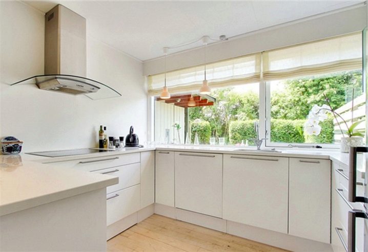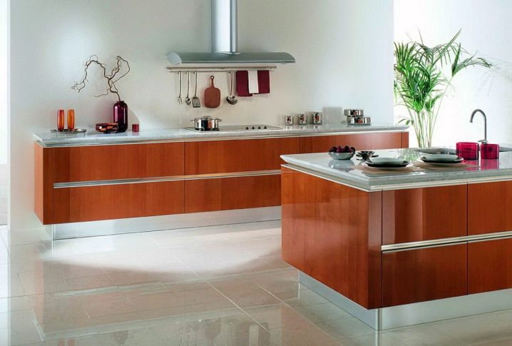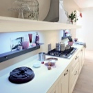 - يسمح لك بالحصول على سطح عمل خفيف جدًا ، لأن الظل من الخزانات العلوية لا يسقط عليه ؛