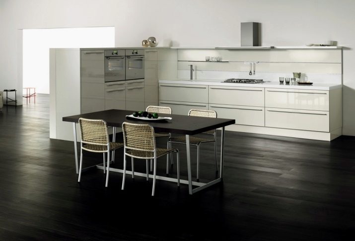 المطبخ ذو الطبقة الواحدة مصمم للجمال! الوظائف والراحة في هذه الحالة تنحصر في الخلفية. هذا هو الحال عندما يعرف المالكون كيفية التعامل مع الأشياء بعناية ، ولا يمتلكون سوى الحد الأدنى من الأواني الضرورية ولا يوفرون أطنانًا من الطعام..