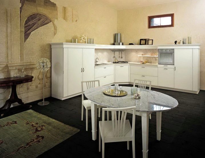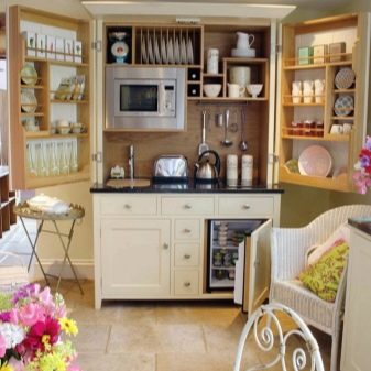 - يترك مساحة كبيرة في الغرفة. إذا كان المطبخ صغيرًا ، فسيعمل هذا الأثاث جيدًا ؛