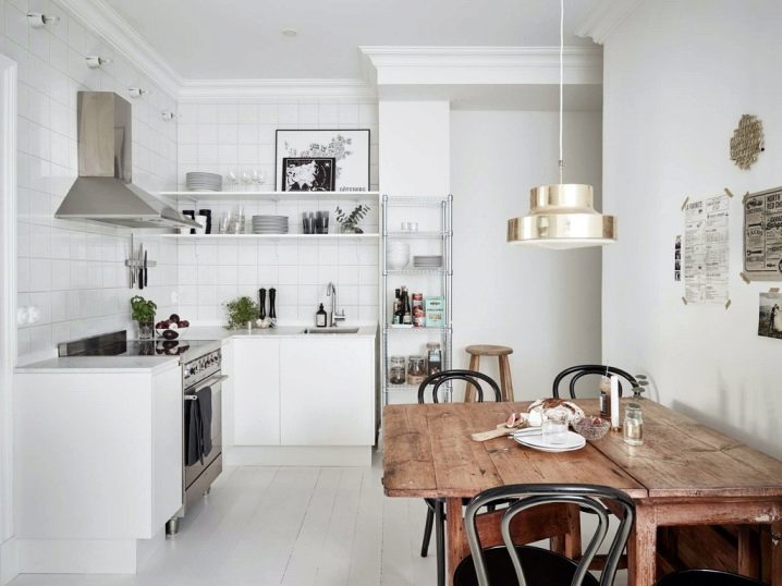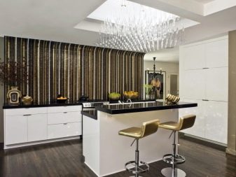 المطبخ بدون خزائن الحائط مناسب للغرف الصغيرة والكبيرة. صحيح ، في الحالة الأولى ، سيتم تصميم مجموعة من طبقة واحدة لتوفير المساحة وليس “التهام” الضوء في الشقة. ولكن بالنسبة للمطبخ الكبير ، فهذه طريقة لإظهار مهاراتك في التصميم وإنشاء تصميم داخلي مذهل وأنيق..