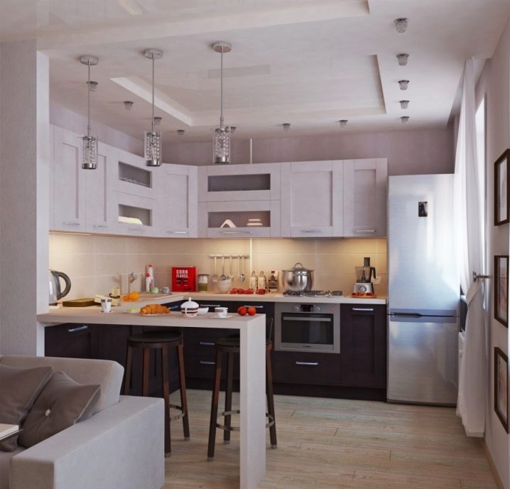 في الشقق الحديثة ، يتم الجمع بين المطبخ وغرفة المعيشة في كثير من الأحيان. عادة ما يستخدم هذا الحل في شقق الاستوديو ، لأن ليس لديهم مساحة كبيرة. من خلال الجمع بين غرفتين ، يمكنك توفير مساحة في الشقة.