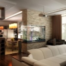 - حوض السمك أو النباتات. هذه الطريقة غير العادية ستضيف الأصالة إلى الغرفة. سيفصل حوض السمك الطويل بصريًا المطبخ عن غرفة المعيشة ويضيف تفردًا إلى الداخل. ولكن عند اتخاذ قرار بشأن هذا التقسيم ، عليك أن تأخذ في الاعتبار وجود الأطفال الصغار والحيوانات في المنزل..