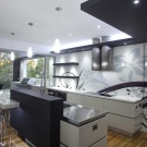 - تقنية عالية. عند تزيين المطبخ – غرفة المعيشة بهذا النمط ، تحتاج إلى استخدام الظلال الباردة. المعادن والزجاج هي المواد الرئيسية. الأثاث المتنقل والأجهزة المنزلية المبتكرة هي سمة أخرى من سمات التكنولوجيا الفائقة. يمكن أن يسمى أسلوب التكنولوجيا العالية “بيت المستقبل” ، لأن إنها تعني كفاءة الطاقة وبيئة العمل. غالبًا ما تكون هذه المنازل مجهزة بألواح شمسية وأنظمة تنقية المياه..