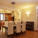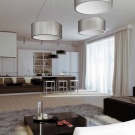 - تركيبات إضاءة. طريقة باهظة الثمن ولكنها أصلية لإضاءة غرفة المعيشة أو المطبخ. ستساعد العديد من الأضواء في إلقاء الضوء على جميع أركان الغرفة. وتبدو مثيرة للاهتمام وغير عادية. إذا كانت الشقة تحتوي على سقوف كبيرة وعالية ، فإن المصابيح المدمجة في السقف المعلق هي الحل الأفضل..