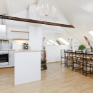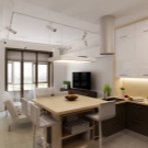 - على الرغم من بعض الصعوبات عند الجمع بين المطبخ وغرفة المعيشة ، فإن هذا الخيار مثالي لشقة صغيرة..