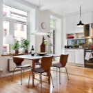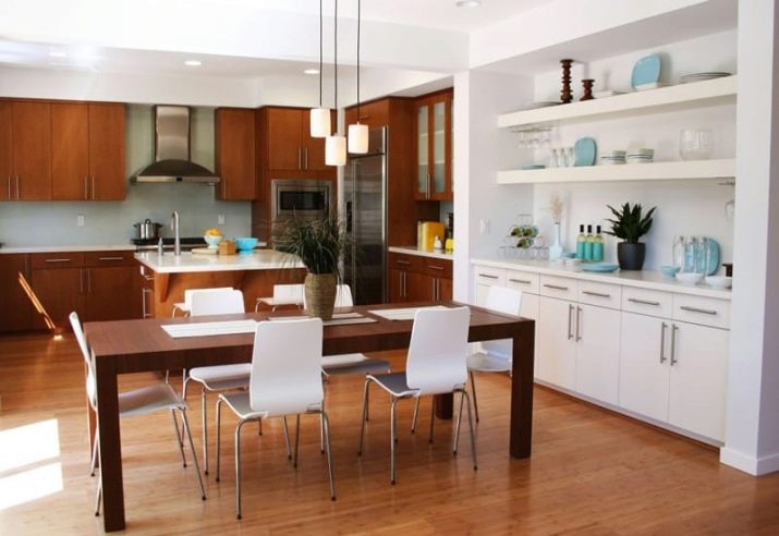 - وأخيرًا ، رابعًا ، سيكون لديك المزيد من الفرص لاختيار تصميم وأسلوب التصميم الداخلي لغرفة الطعام والمطبخ المدمجة الخاصة بك.