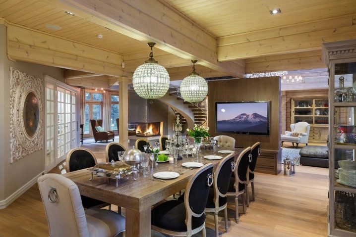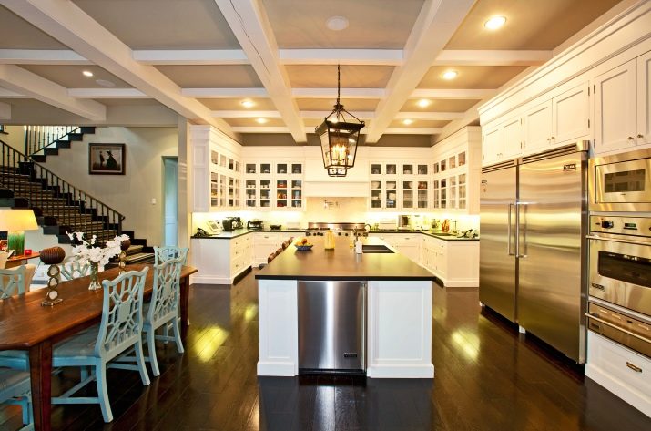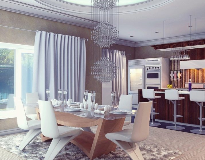 - ثالثًا ، في غرفة الطعام والمطبخ الكبيرة ، من الممكن تركيب جميع الأجهزة المنزلية الضرورية دون خوف من وجود مساحة صغيرة للحركة الحرة ؛