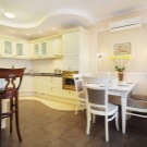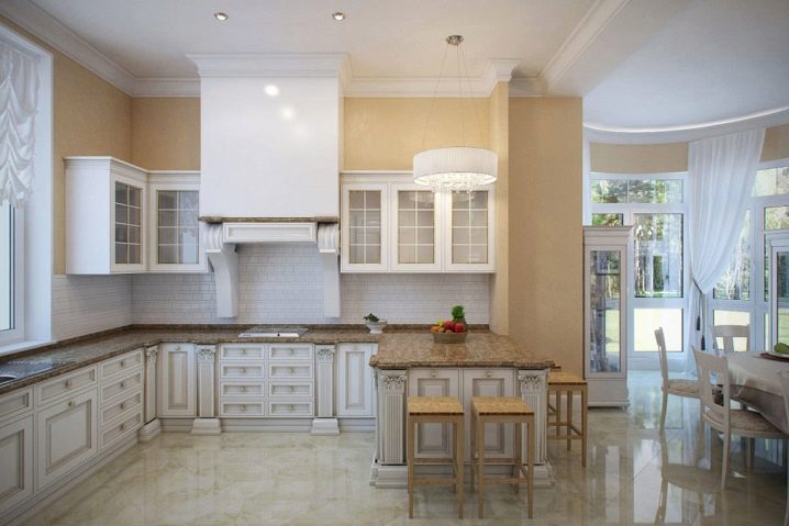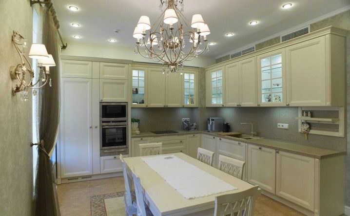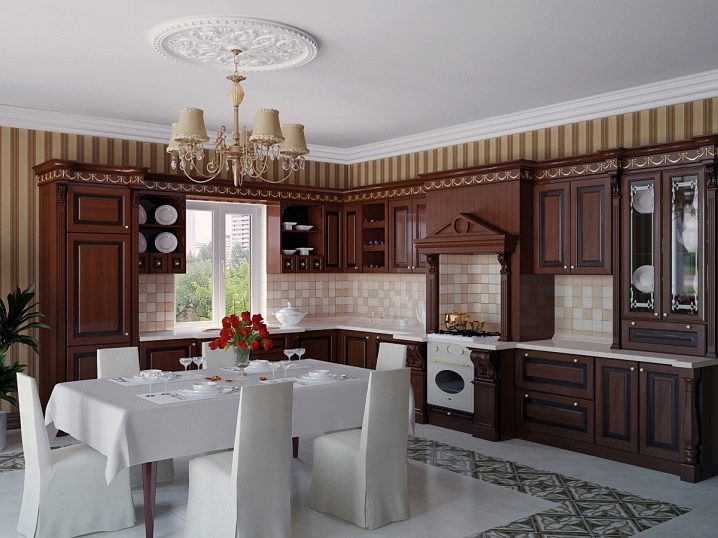 في أي حال ، يجب أن يكون الأثاث عالي الجودة وباهظ الثمن ، ومصنوع بشكل أساسي من الخشب. الأجهزة المنزلية مدمجة ومخفية عن الأنظار. استخدم ثريا للإضاءة ، يمكنك أيضًا وضع إضاءة إضافية في شكل مصابيح موضعية. يجب أن يكون نظام الألوان للمطبخ الكلاسيكي دافئًا ، بدون تباينات حادة وبقع مشرقة..