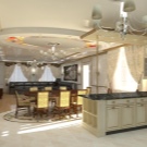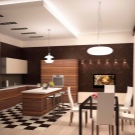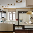 لذلك ، بدأت في إنشاء مشروع لغرفة المطبخ وتناول الطعام في المستقبل. المرحلة الأولى هي اختيار تصميمها. سنتحدث عن أصنافهم بعد ذلك بقليل. بعد ذلك ، عليك التفكير في كيفية تقسيم المناطق ، أي تقسيم غرفة الطعام والمطبخ إلى منطقة عمل وتناول الطعام. يمكن القيام بذلك عن طريق وضع أحد أسطح العمل أو طاولة بار أو زخرفة أرضية كبيرة بينهما ، على سبيل المثال ، مدفأة زخرفية للجزيرة أو زهرة كبيرة بوعاء..