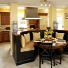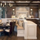 كما أن زخرفة منطقة تناول الطعام مهمة جدًا. تعرف على مجموعة الطعام التي تناسب مطبخك الكبير بشكل أفضل – هل ستكون طاولة بها صوفا زاوية ناعمة أم أنه من الأفضل اختيار مجموعة بها كراسي؟ ما الشكل الذي تحتاجه للطاولة؟ كيف تختار نظام الألوان المناسب بحيث تتناسب منطقة تناول الطعام مع منطقة الطهي تمامًا؟ لا تكن كسولًا للذهاب للتسوق ، وتصفح الكتالوجات ، والتشاور مع المصممين – بشكل عام ، فكر في كل شيء بأدق التفاصيل وابدأ في ترتيب غرفة تناول الطعام في المطبخ.