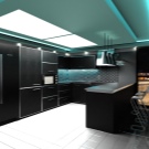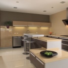 - لنتحدث عن الإضاءة. ينصح المصممون باستخدام الضوء الدافئ الناعم بدلاً من ضوء النهار البارد ، وكذلك المصابيح الموضعية الصغيرة الموجودة حول محيط المطبخ بدلاً من مصباح واحد في الوسط ؛