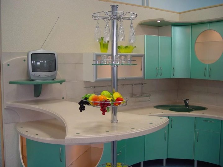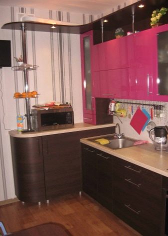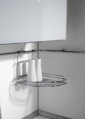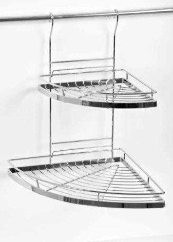 - ركن. هذه الأرفف مناسبة إذا تم تثبيت سكة زاوية في المطبخ. في أغلب الأحيان ، تشغل مساحة بالقرب من الحوض ، لذلك يمكن أخذ رف الزاوية تحت الإسفنج والخرق والصابون واستخدامه أيضًا كمجفف أطباق. ميزة إضافية لهذه الأرفف هي أنها غالبًا متعددة المستويات..