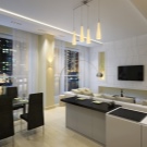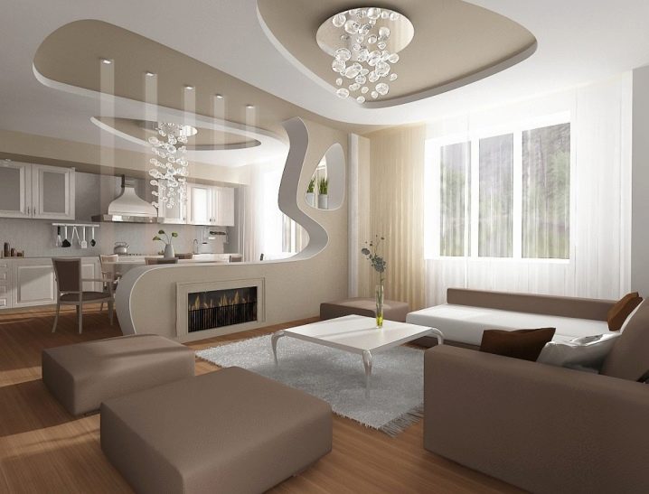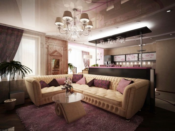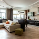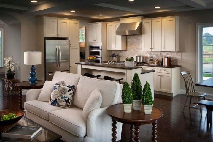 - غرفة معيشة ومطبخ فسيحة. يتم اختيار هذا الخيار من قبل أصحاب الشقق الكبيرة. هناك العديد من الخيارات لتزيين هذه المساحة ، إليك بعض الأفكار الجيدة للصور..