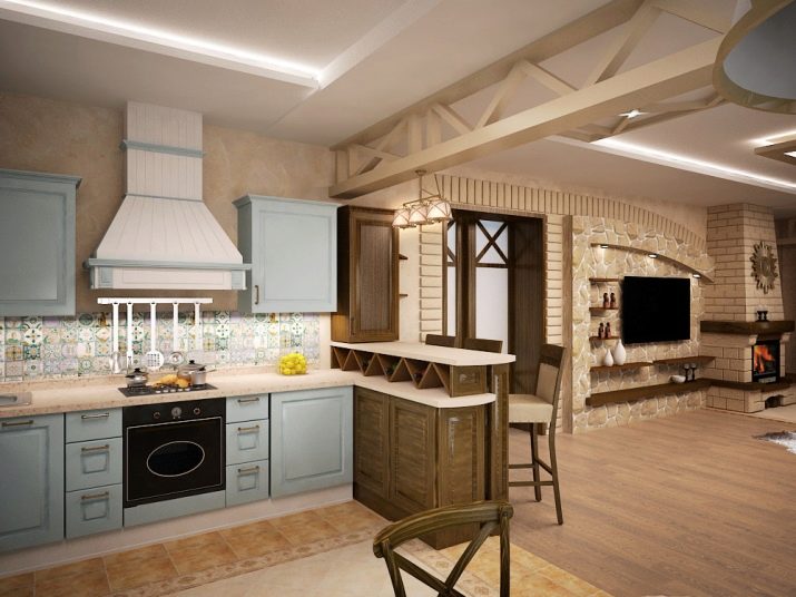 تصميم مثير للاهتمام للغاية لغرفة المعيشة في المطبخ بأناقة "بروفانس". المطبخ “الفرنسي” – غرفة المعيشة – مكان مريح للغاية يتنفس منه الدفء والعناية. يفترض التصميم الداخلي في هذا النمط وجود ألوان باستيل دقيقة: الخردل والخوخ والأرجواني والبيج.