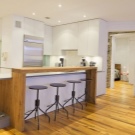 التوصية الرئيسية فيما يتعلق بعرض العارضة هي أنه يجب ألا يقل عن 30 سم ، وإلا سيكون من الصعب وضع العناصر على المنضدة أو تناول الطعام بشكل مريح. العرض الأكثر تفضيلاً هو 50-60 سم ، وبهذه الأبعاد ، سيتحمل الرف حمولة وظيفية كاملة. أسطح العمل القياسية متوفرة بعرض 55 سم.