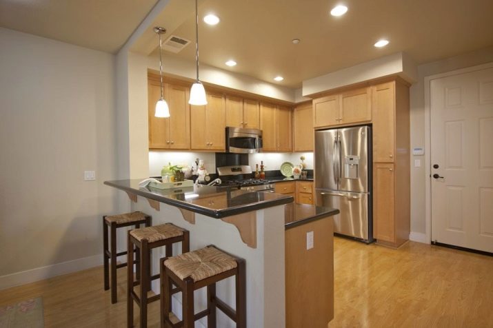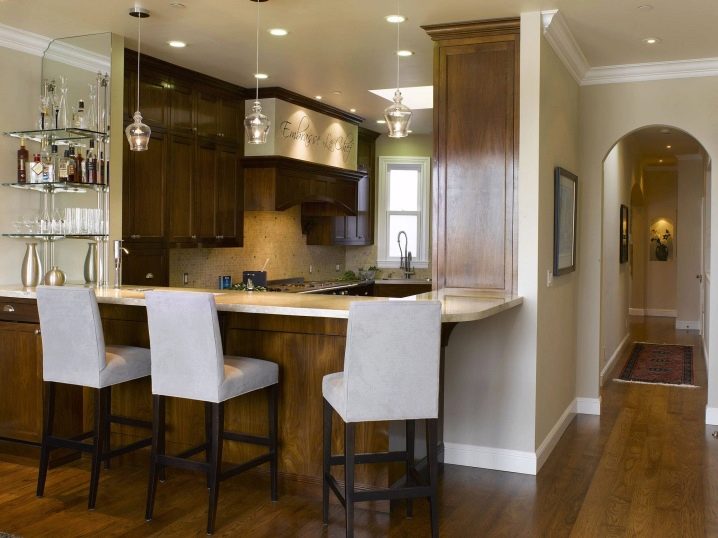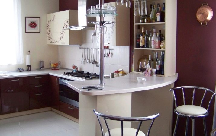 عند اختيار عداد شريط ، من الضروري مراعاة أبعاد الغرفة: في المطبخ الصغير ، لن يكون من المناسب وجود قسم ضخم به حوامل للزجاجات والأطباق أو جزيرة مطبخ. وقد يكون قسم الجدار لفصل منطقة تناول الطعام مناسبًا تمامًا..