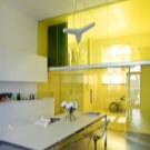 سيكون بديلاً للهيكل الزجاجي الضخم قسمًا وظيفيًا للمطبخ مع أرفف زجاجية أو نوافذ من الزجاج الملون: لن يصبح فقط “مخزنًا” للأطباق أو أدوات المطبخ ، ولكن أيضًا أثاثًا يرضي العين. الأرفف ، كنوع من التقسيم الزجاجي – نسخة لغرفة صغيرة ، حيث تريد الحفاظ على الإيجاز والإضاءة.