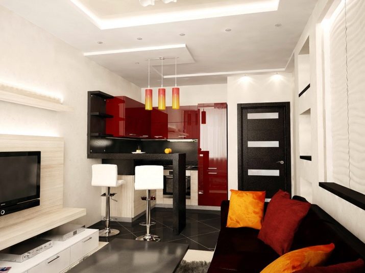 حسب تصميمها ، فإن أقسام المطبخ غنية جدًا لدرجة أنها تسمح لك بإنشاء تصميمات داخلية استثنائية لغرفة المعيشة في المطبخ.