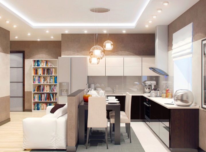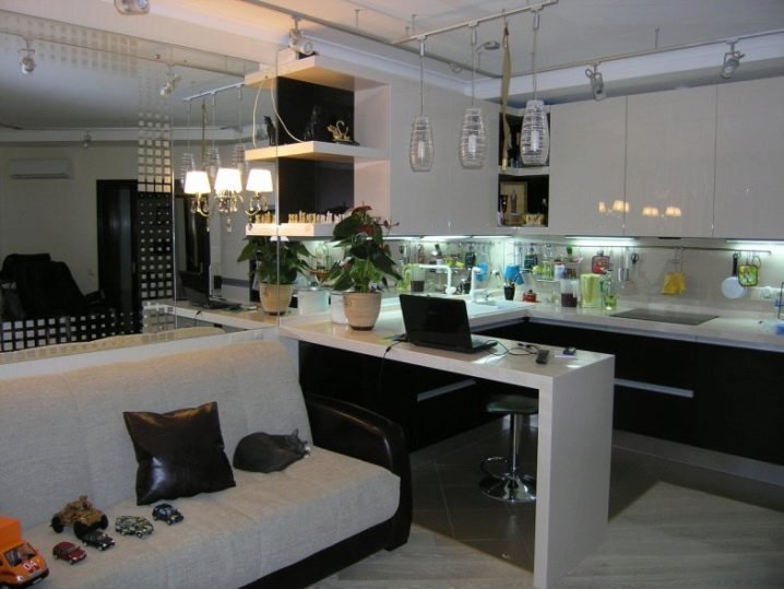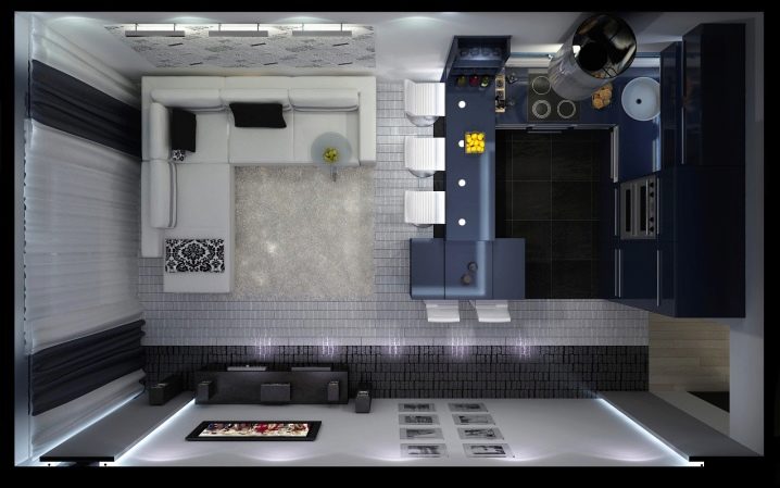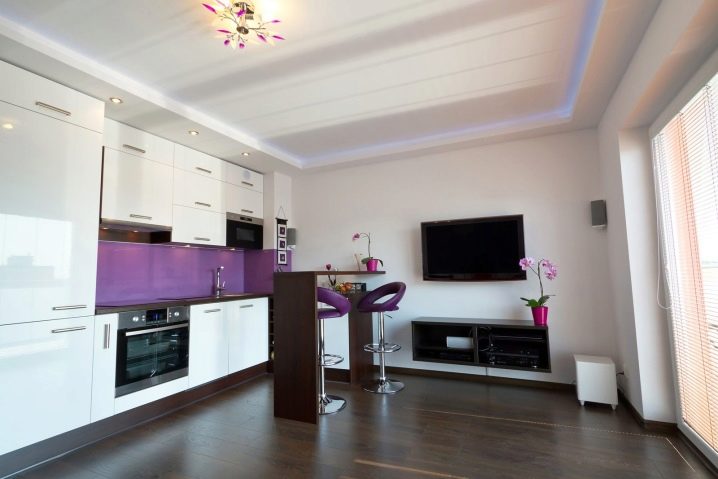 لا يفقد المطبخ وغرفة المعيشة المشتركان غرضهما ، لذلك ، عند التخطيط والتصميم ، من الضروري إيلاء اهتمام كافٍ لمسألة تقسيم المناطق.