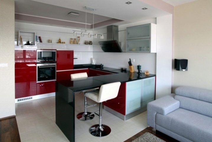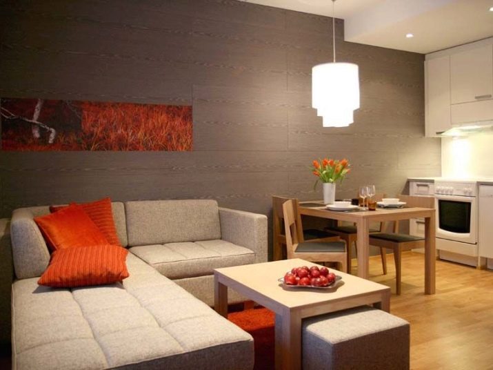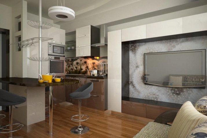 لا يفقد المطبخ وغرفة المعيشة المشتركان غرضهما ، لذلك ، عند التخطيط والتصميم ، من الضروري إيلاء اهتمام كافٍ لمسألة تقسيم المناطق.